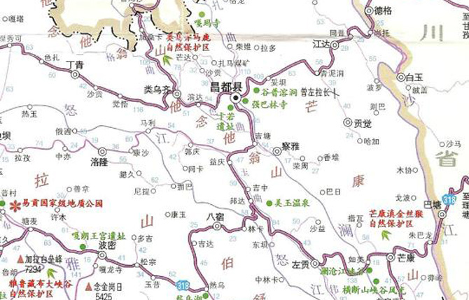 出德格過金沙江崗托大橋后即進入西藏的昌都地區(qū)江達境內(nèi)。江達是川藏北線進入西藏的第一個縣,地處昌都地區(qū)東北部,金沙江的上游,江達藏語為“江普寺溝口”,原是德格土司的屬地。從江達出發(fā),車行在海拔4000米以上的山脊,要經(jīng)過4個山口,翻過達馬拉山抵達昌都,游覽昌都境內(nèi)行的名勝-強巴林寺和卡若遺址。強巴林寺建于明正統(tǒng)二年(1437年),因寺內(nèi)主供未來佛(即強巴佛),所以得名為昌都強巴林寺,簡稱昌都寺,是康區(qū)格魯派寺院中創(chuàng)立最早、規(guī)模最大的寺廟??ㄈ暨z址位于昌都鎮(zhèn)12公里的瀾滄江西岸,海拔3100米,卡若--藏語中意為“城堡”,卡若文化是西藏三大原始文化之一??ㄈ暨z址是西藏自治區(qū)第一處原始部落遺址,也是西南地區(qū)保存得較好一處新石器時期遺址。昌都先民在4500年前生活在這片富饒的瀾滄江畔,并創(chuàng)造了燦爛的卡若文化。
