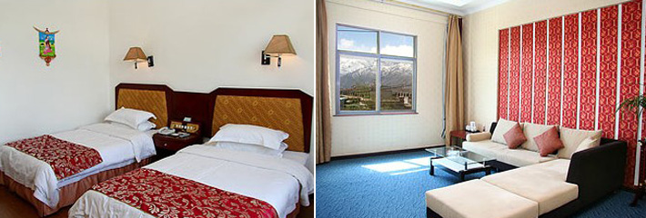 1.達到掛三星的標準,對旅行社推的是準四星.2.舒適干凈,成都訂做的品質(zhì)家具,歐式窗簾,高檔即花布單.3.位置極佳,住在酒店部分房間坐觀布宮.一覽無余,離布宮及新建的公園僅500米不到,離市內(nèi)各大景點僅5分鐘左右.4.四川掛牌四星級酒店,18年經(jīng)營管理岷山大飯店的下屬管理單位。