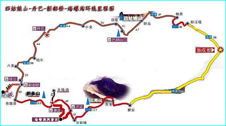 起點(diǎn)是天府之國(guó)成都,沿途沿過(guò)四姑娘山,翻越高山峽谷到達(dá)雅江,與香格里拉之魂藍(lán)色星球上面最后一片凈土稻城亞丁會(huì)面,然后經(jīng)過(guò)攝影天堂新都橋到達(dá)九龍,后返回到美麗的康定,到達(dá)四季美景各異的海螺溝,經(jīng)雨城雅安返回成都。